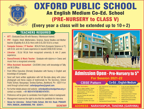 Oxford Public School, Garhwa promises to replicate the excellence that the other Oxford Public Schools in India and abroad have shown in providing a holistic education to its students.